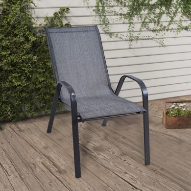 Metal garden armchair in black color with waterproof textline fabric in dark gray color 56x68x93cm..